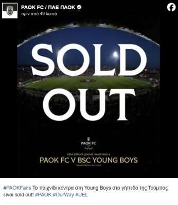 Ο ΠΑΟΚ, ανακοίνωσε πως έγινε sold out στο σημερινό ματς με την Γιούνγκ Μπόις και θα έχουμε για ακόμη μια φορά φέτος κατάμεστη Τούμπα.